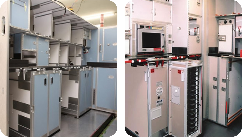 私たちは、中・大型機のギャレーで世界シェア約40%、ラバトリーで約50%を誇るジャムコ社の内装品製造を任されています。 特に、ボーイング社の787ワイドボディ機のラバトリードアはすべて私たちが手掛けています。この技術力により、お取引様より高い信頼を得ています。